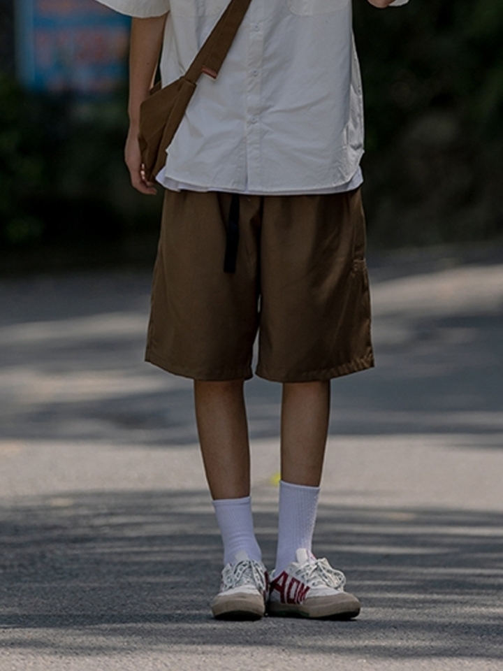 长度属于五分的款式哦,直筒版型,上身很显瘦。褐色的颜色增添了复古的味道哦,这款短裤可以搭配上一款白色的T恤和休闲鞋哦,很显活力。