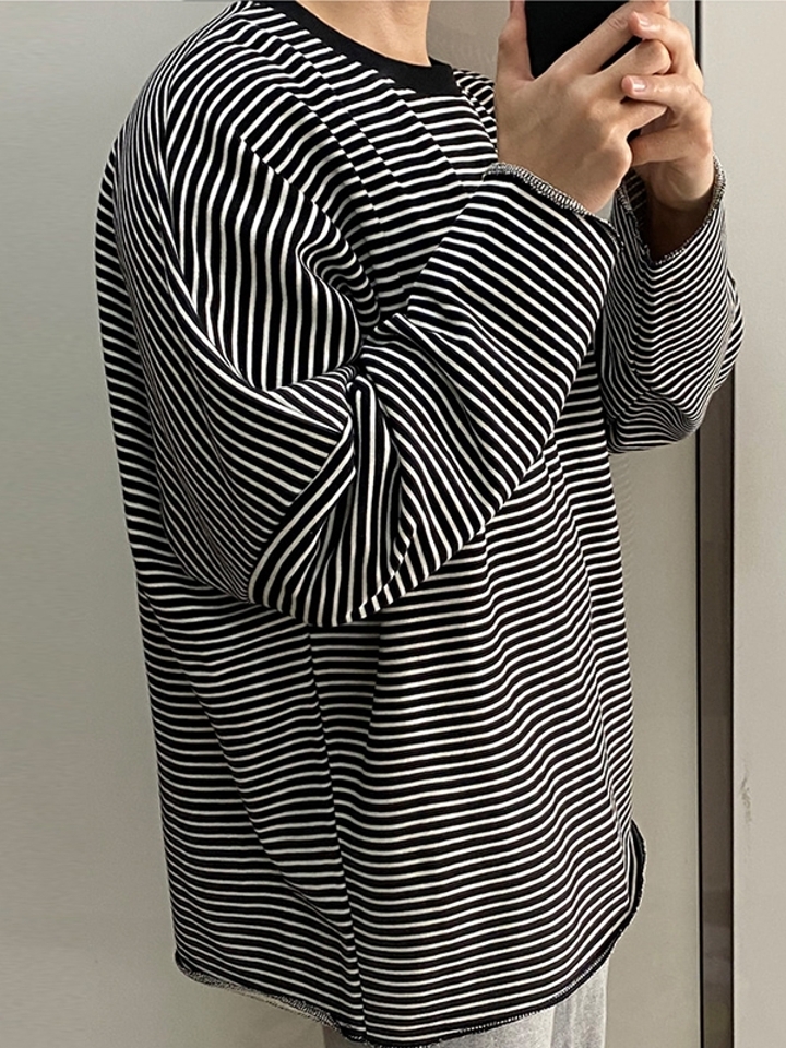 基础款单品普遍会显气质,经典风条纹颜不太深看起来养眼,搭配毛衣和休闲裤整身甄选弹力针织棉面料,单穿或内搭阳光有活力,这款打底t恤就是个例子,这个当季你醒目出彩。