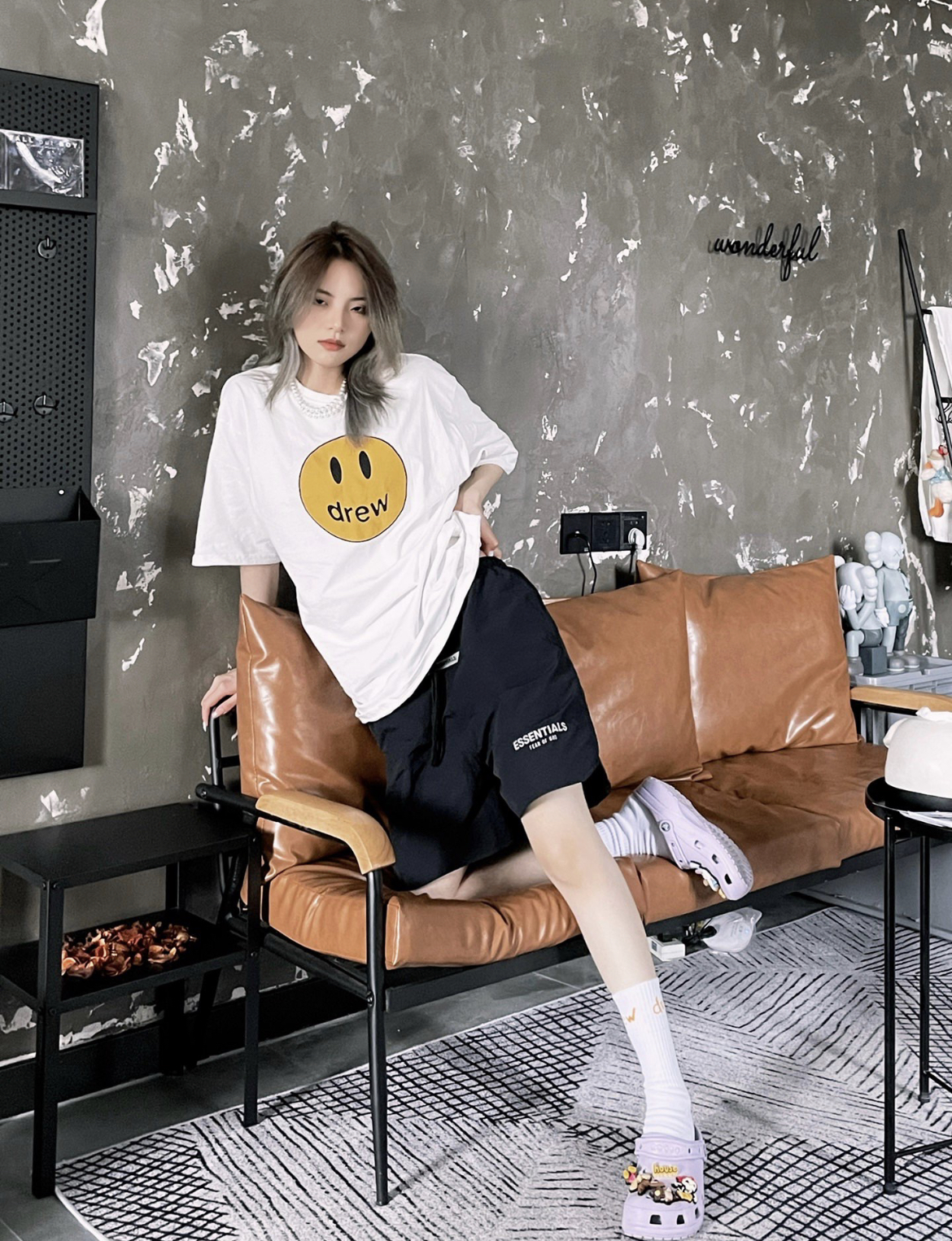 这款t恤是简约的风格,宽松的版型,时尚百搭,胸前的字母印花,很有个性,搭配牛仔裤或者短裤都很好看。