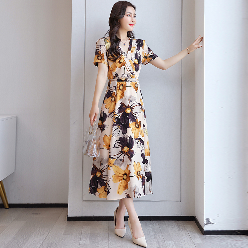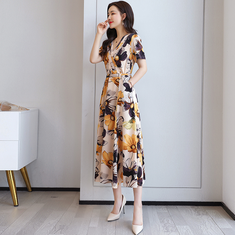 这款连衣裙的设计很有特色,V领的款式,很好的修饰了脸型,领口的蝴蝶结设计,显得甜美可爱,雪纺的面料,亲肤透气,穿上很显气质。
