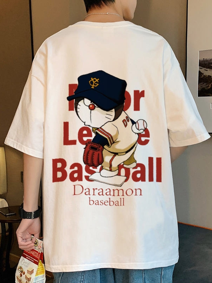 简约的白色T恤,夏季清凉又百搭。这件白T恤在左胸口的位置,搭配了一个可爱的哆啦A梦印花,卡通的印花给素色T恤带来活力。