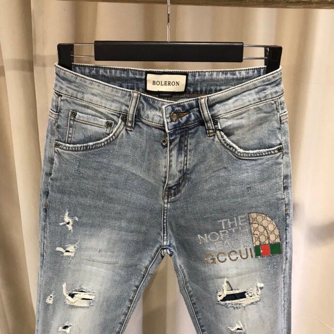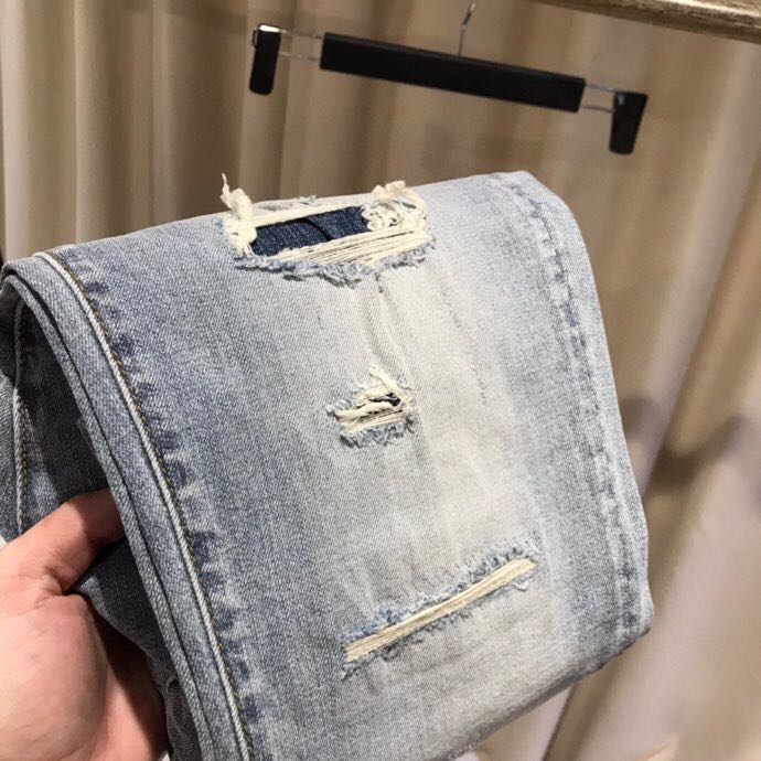 这款牛仔裤采用了修身的版型设计,上身效果很好,很显瘦,破洞的设计很有个性,搭配一件T恤,就能轻松穿出潮男范。