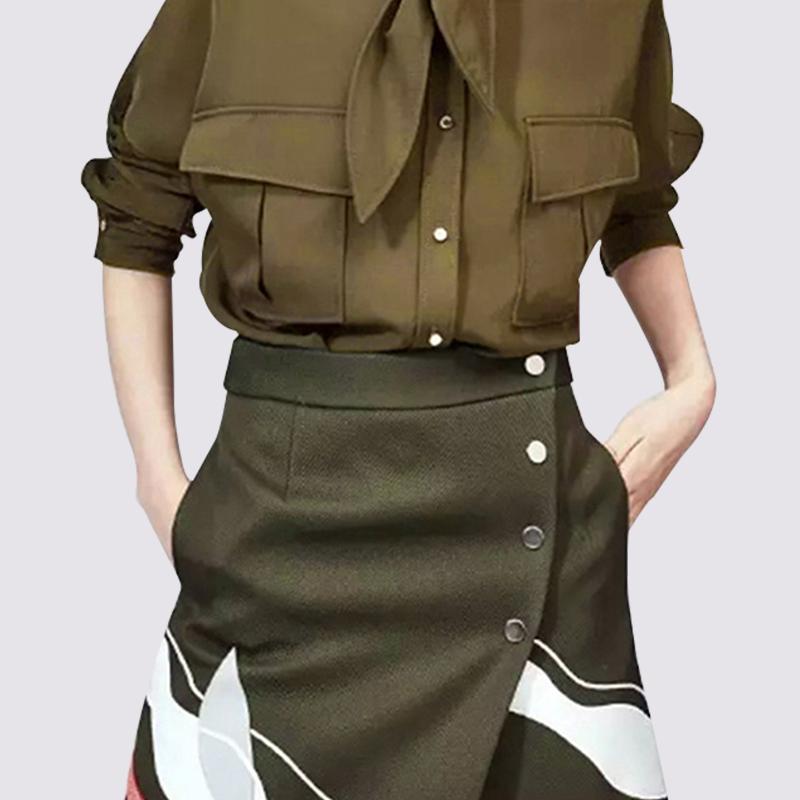 简约的高腰设计,搭配上修身的版型,上身显瘦又显高。