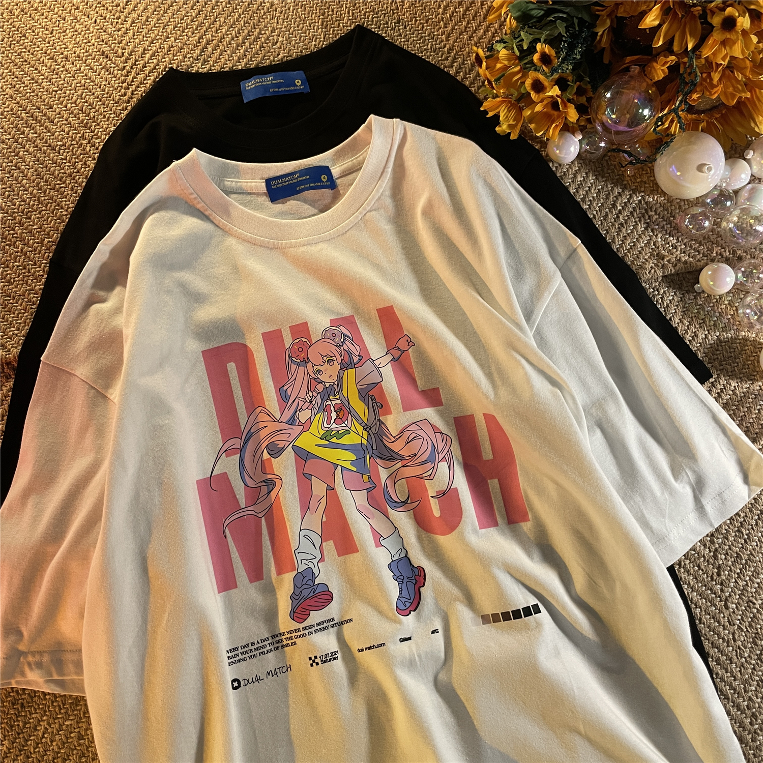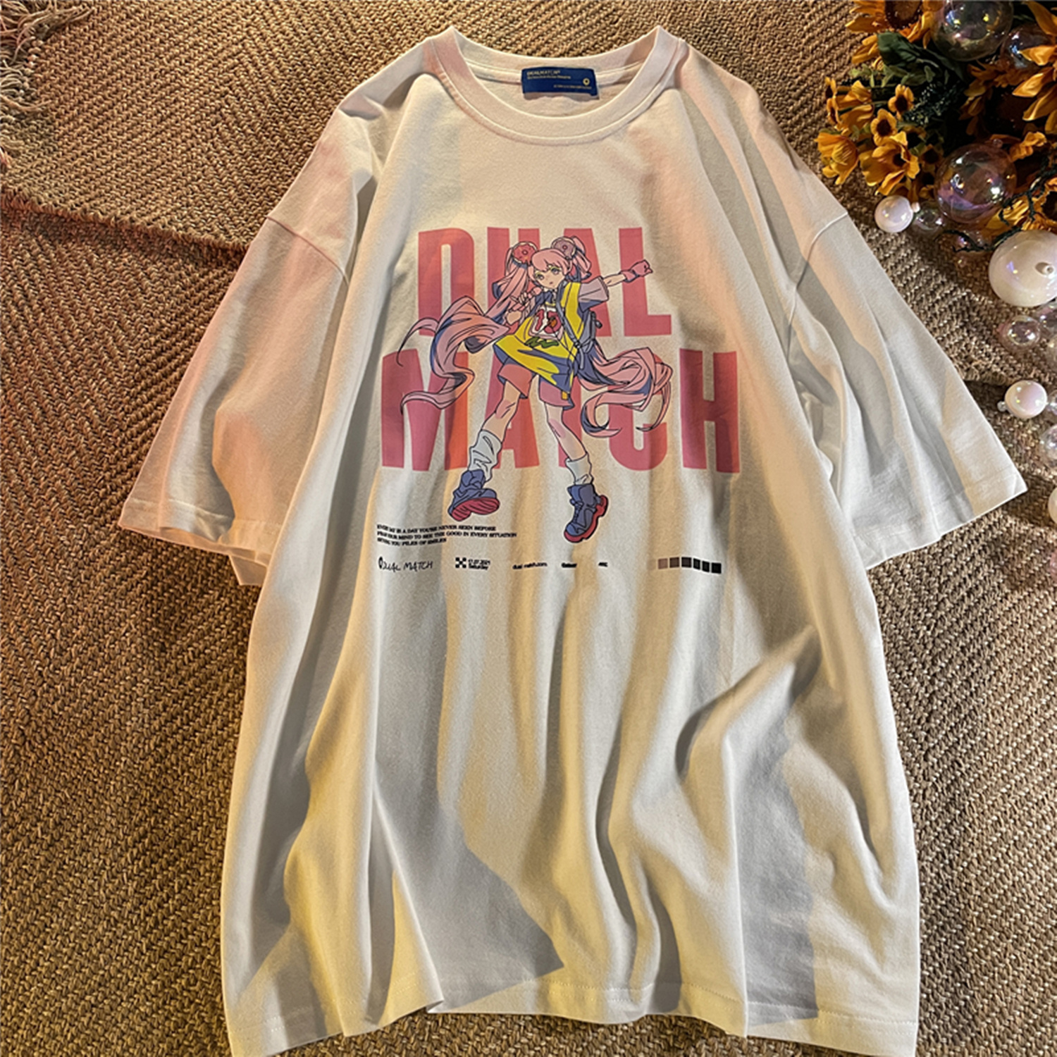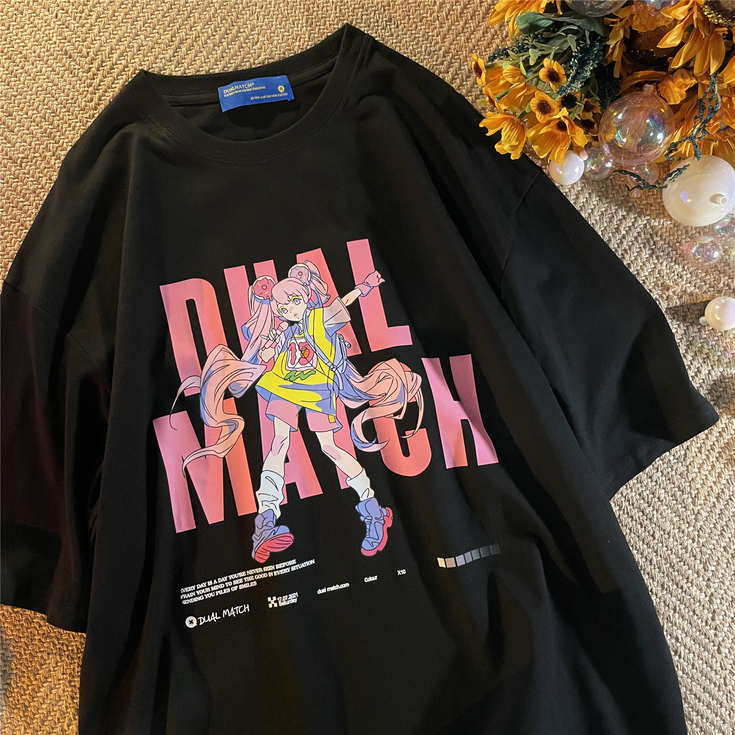 这款t恤采用了优质的纯棉面料,手感柔软舒适,透气性好,穿着舒适胸前的卡通印花图案,充满了童趣,宽松的版型,不挑身材,穿起来很显瘦。