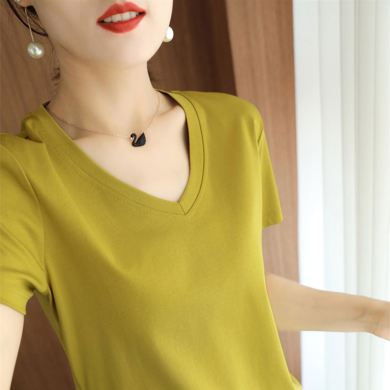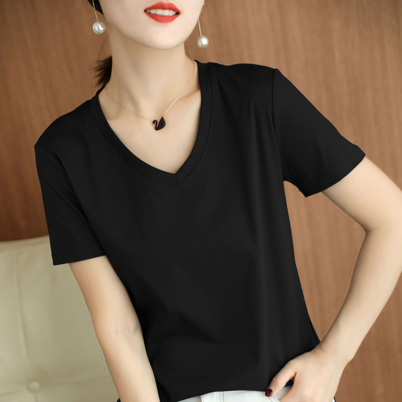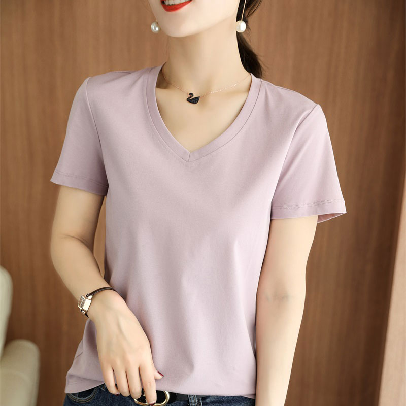 t恤是简约的风格,V领的样式,时尚大气,胸前的印花图案,很有个性,穿上很显气质,搭配牛仔裤或者短裤都很好看。