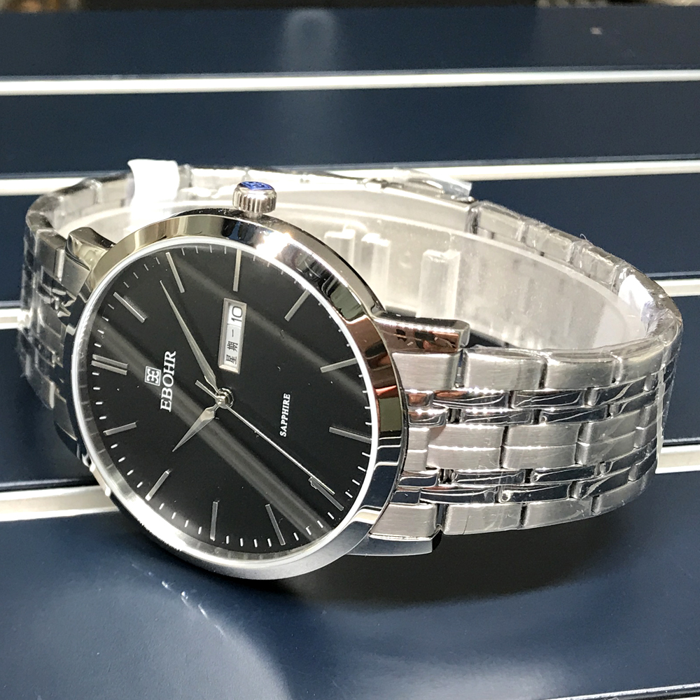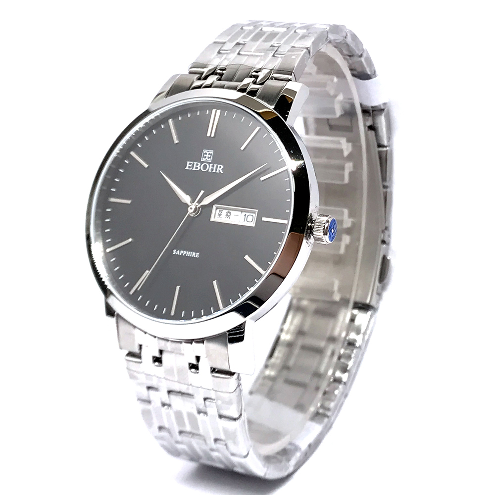 依波 Ebohr这款男士手表,采用矿物强化玻璃镜面材质制作,防刮耐磨。