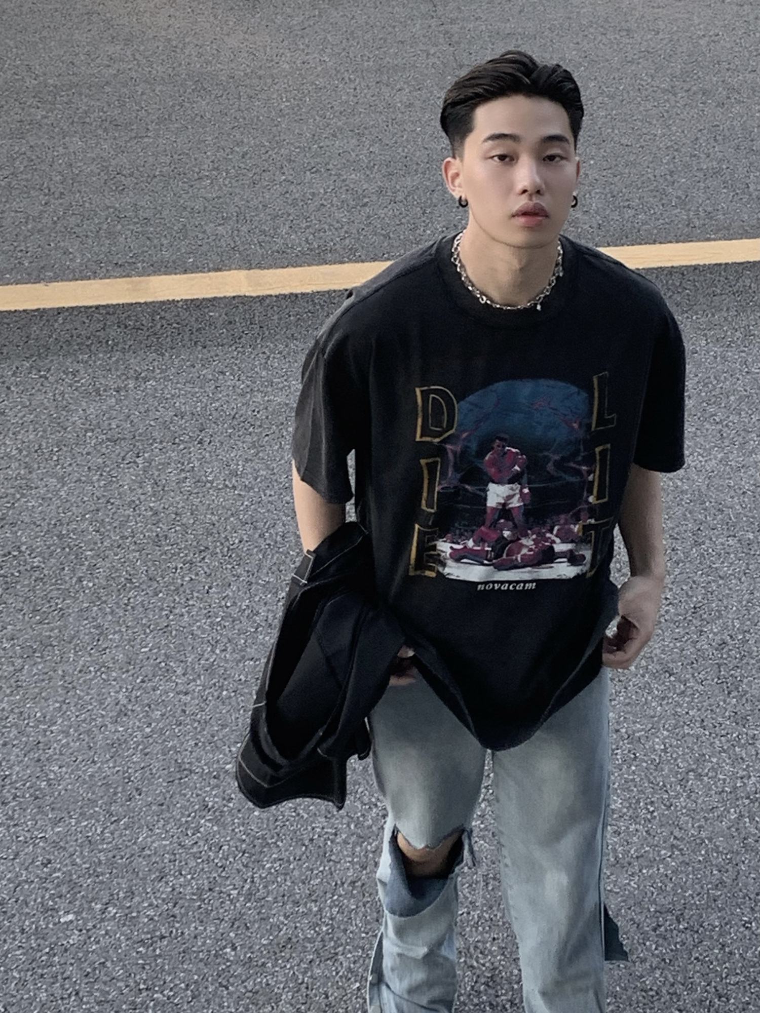宽松T恤,让你轻松驾驭,个性印花,彰显时尚潮流,经典复古风格,时尚百搭,纯棉材质,穿着舒适透气。