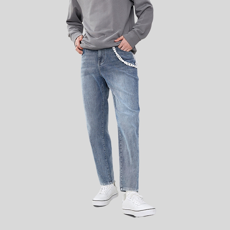 直筒版型,穿着舒适自在。修身牛仔裤,显瘦显腿长。水洗工艺,彰显男士魅力。