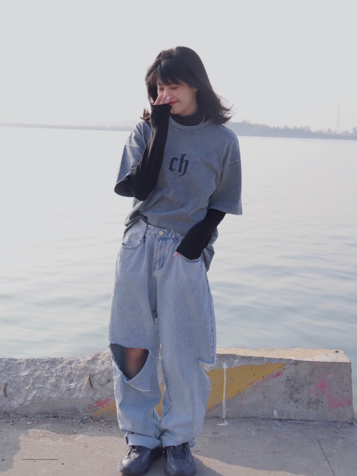 我最近挖到的宝藏单品,CH家的这款灰蓝色T恤,真心很好看,非常有那种美式复古的气息,不论是单穿还是叠穿都是比较不错的。