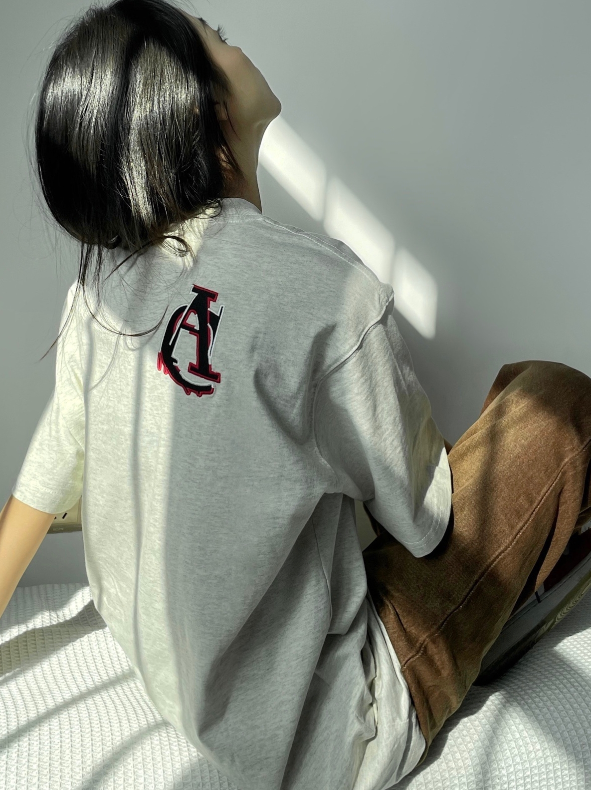 这是一款简约的宽松纯色半袖t恤,衣身有三色可选,经典的黑白灰三色可选,满足了不同的搭配需求,清新简洁的色调,上身简单时髦,宽松的剪裁,具有很强的包容性,结合胸前趣味撞色字母点缀,展现出与众不同的休闲街头感,搭配圆领剪裁,便于穿脱。
