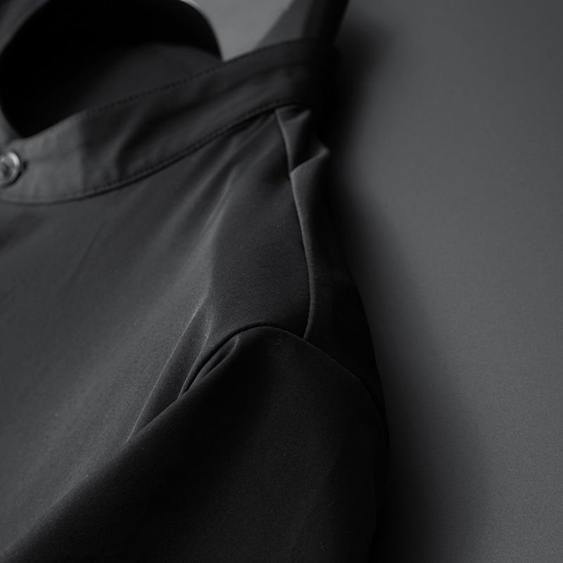 简约的高腰设计,搭配上修身的版型,上身显瘦又显高。