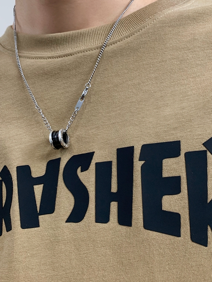 这是一款基础版型的圆领t恤,采用纯棉面料,透气又好穿。衣身采用了圆领撞色印花,流行的街头风格,丰富视觉亮点。螺纹锁边的做工,平整又有品质,不易变形。