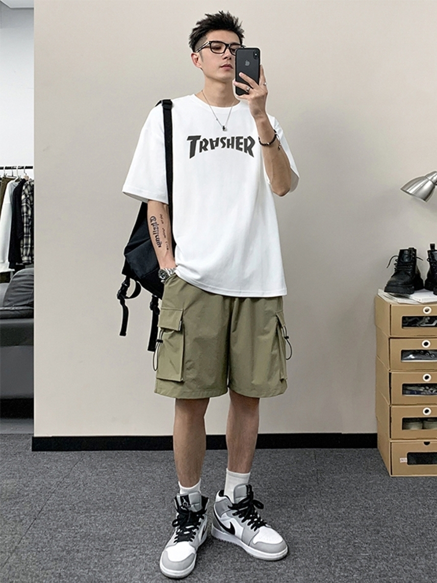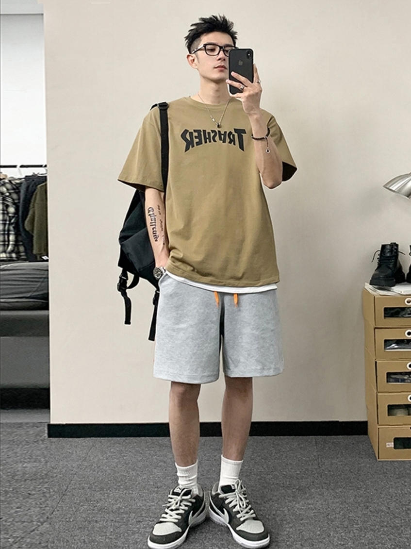这是一款基础版型的宽松t恤,选用的是优质的透气面料,软糯亲肤,带来了更好的穿着体验。领口采用的是螺纹的细节,防止了变形。胸前的文字印花图案,更是大大的提升了辨识度。落肩袖型的选用,活动更加方便,没有拘束感。