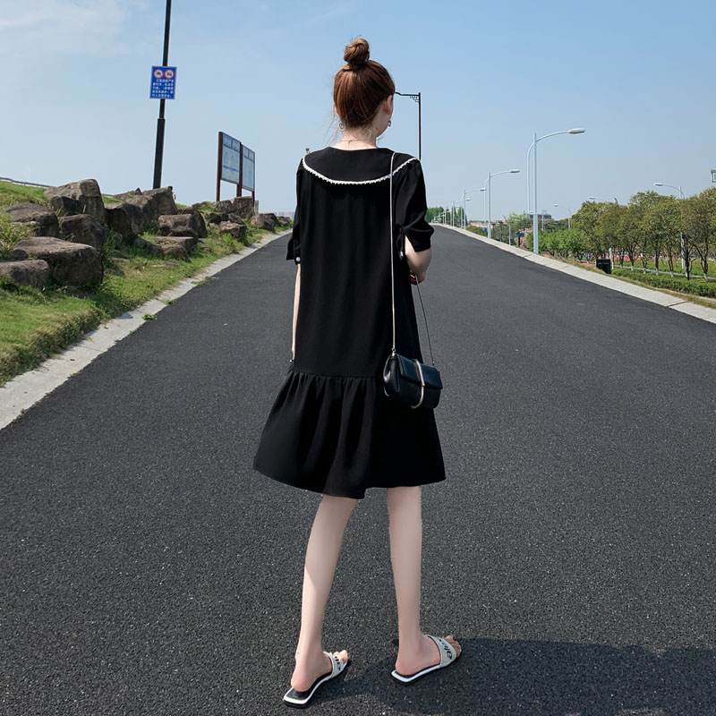 简约的纯色连衣裙,宽松的版型,穿着舒适自在,雪纺面料,亲肤透气,上身优雅时尚。