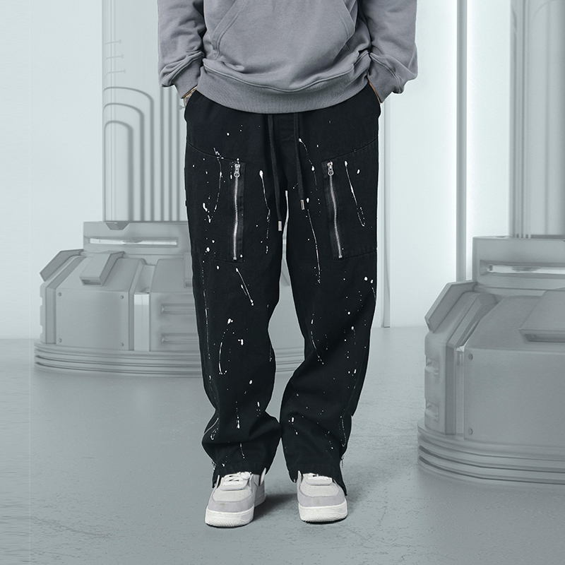 泼墨印花的设计,让裤子更具街头感,宽松的版型,穿着舒适自在。