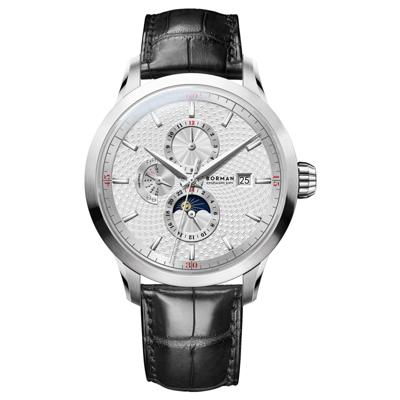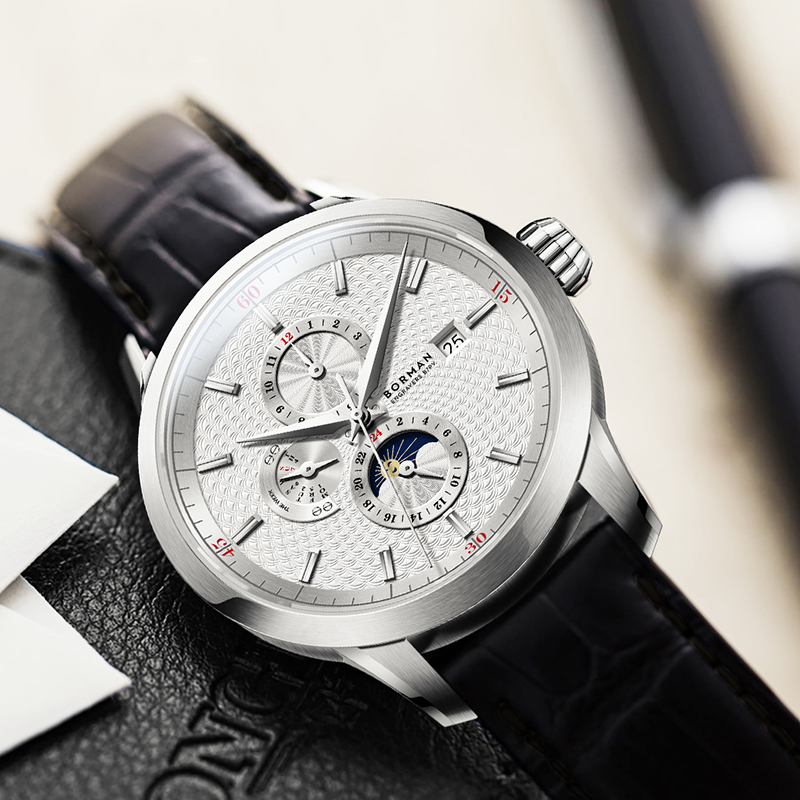 BORMAN 曼全自动机械表采用进口机芯,精准走时。蓝宝石玻璃镜面,硬度仅次于钻石,防刮耐磨,历久弥新。