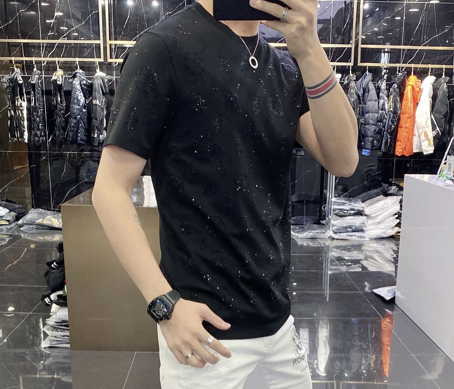 圆领设计,修饰颈部线条。一件t恤就能搭遍所有时尚单品。