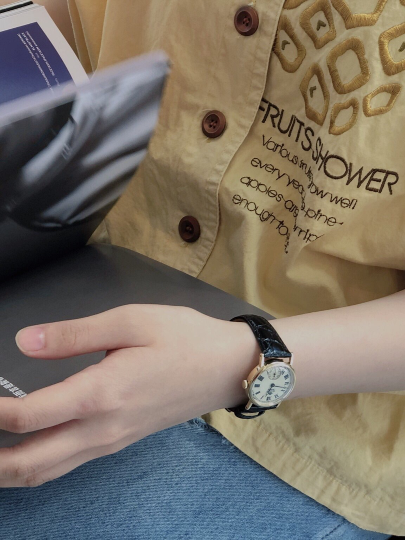 它的风格也不会很正式,休闲装也可随意搭,我随便搭配条裙子都很好看,而且整块手表很精致,适合手腕比较细的仙女,优雅知性,女人味十足。