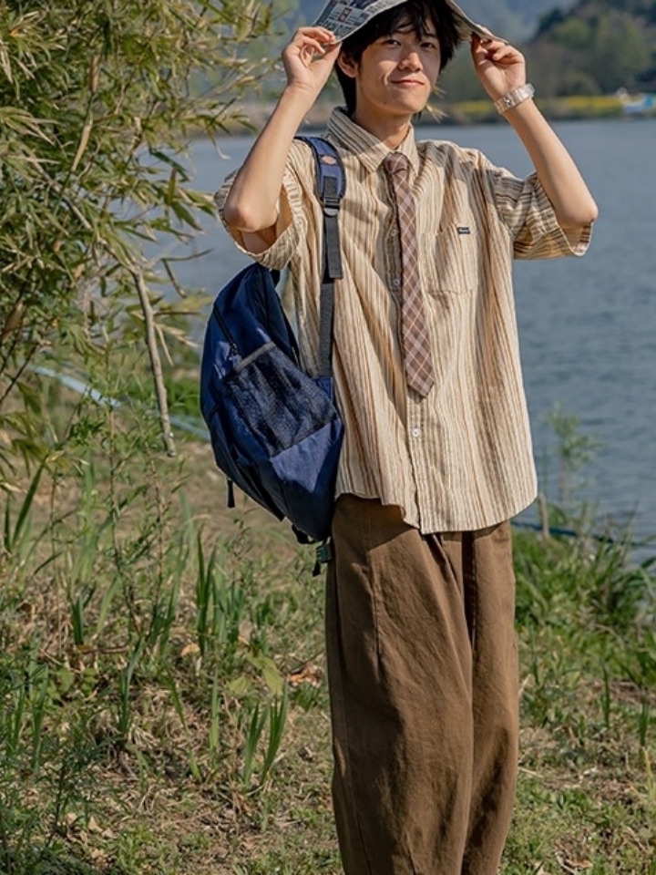 这件衬衫的款很好看,面料也很独特,棉麻的,穿着非常的舒适,整套配起来非常vintage,比较不挑场合,上学上班都可以穿。