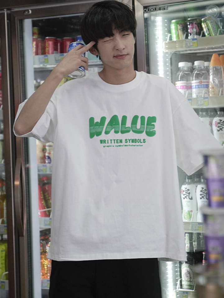 宽松直身的版型设计,落肩袖大方的修饰,很有着随性自由的感觉。白色为底搭配胸前的字母印花,立体效果强,彰显青春活力。