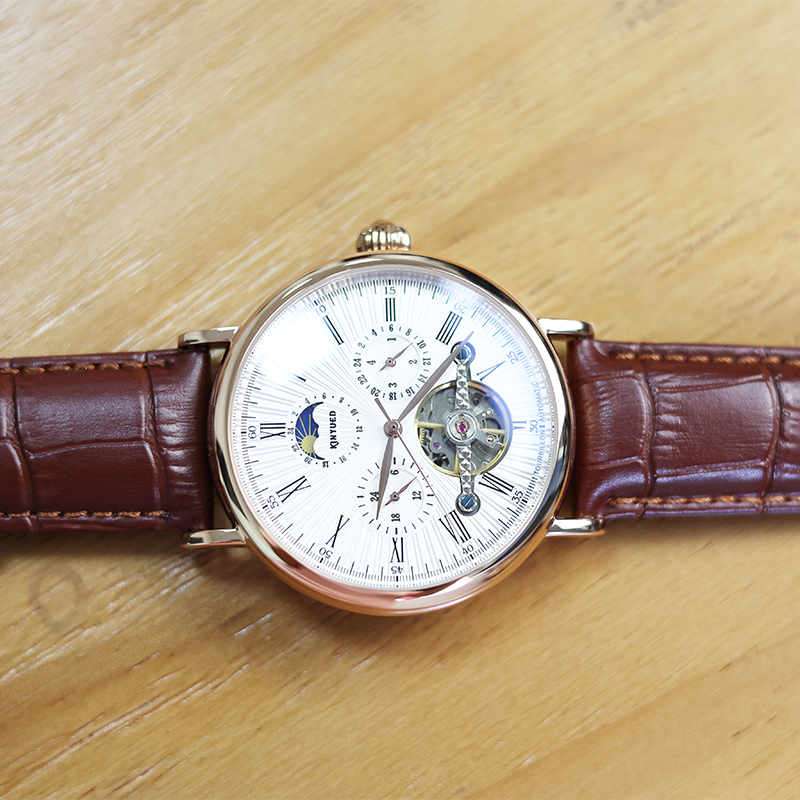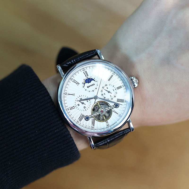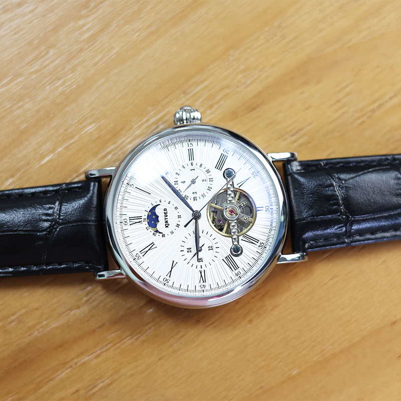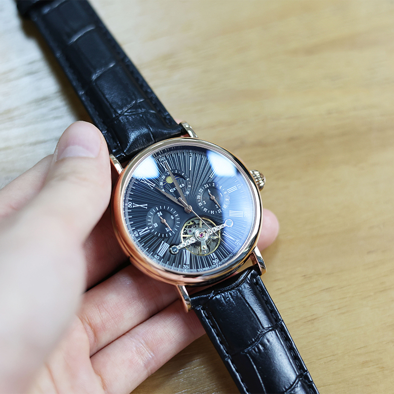 法洛 蒂全自动机械手表,采用的是矿物强化玻璃镜面材质,耐磨耐刮,防刮花。