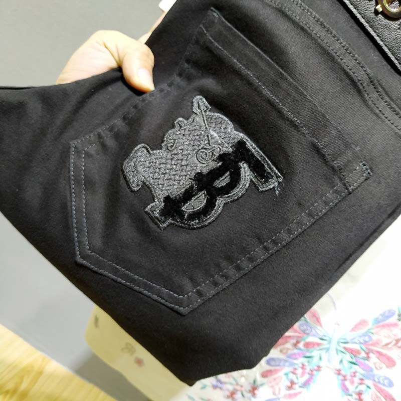 这款牛仔裤的设计很有特色,高腰的版型,很好的修饰了身材比例,显瘦效果很棒,搭配一件T恤,就能轻松穿出时尚感。