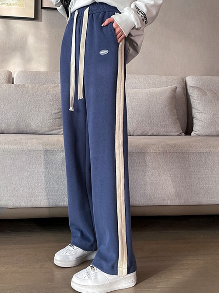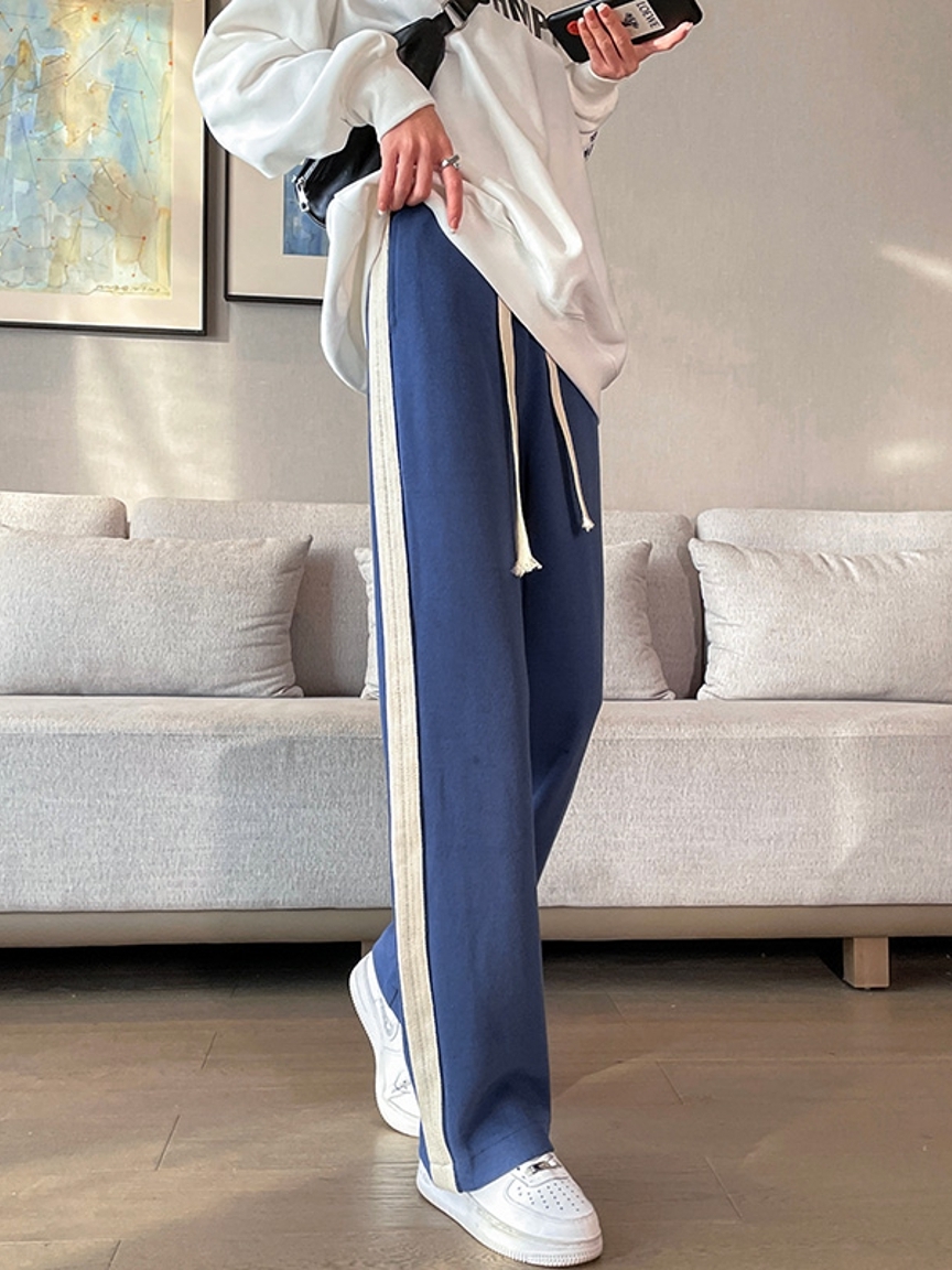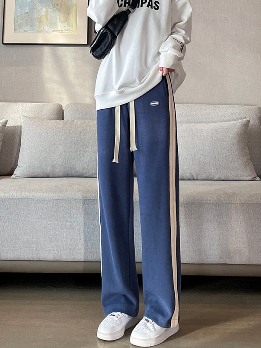 腿粗星人的福音来啦,这款阔腿运动裤简直太赞了,采用撞色元素设计,个性十足,呈现休闲的味道。