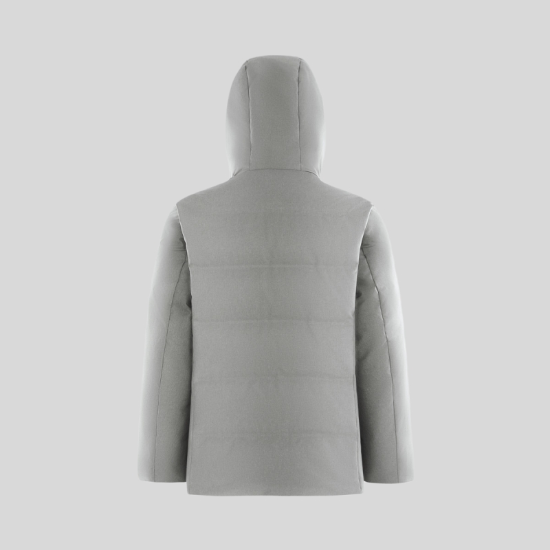 此款羽绒服采用了经典的连帽设计,防风保暖,衣身的撞色拼接设计更是增加了时尚感。