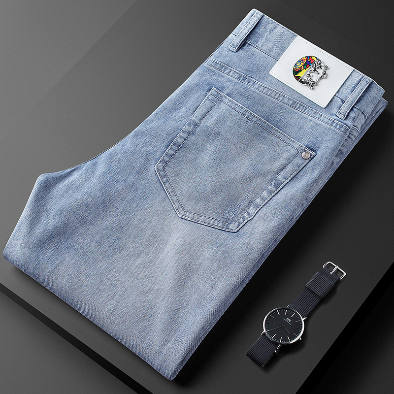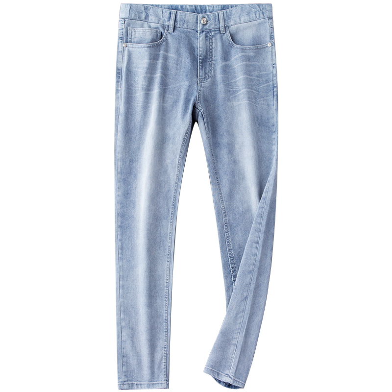 高腰设计,拉长身材比例。高腰牛仔裤,显瘦显腿长。直筒裤型,修饰腿部线条。