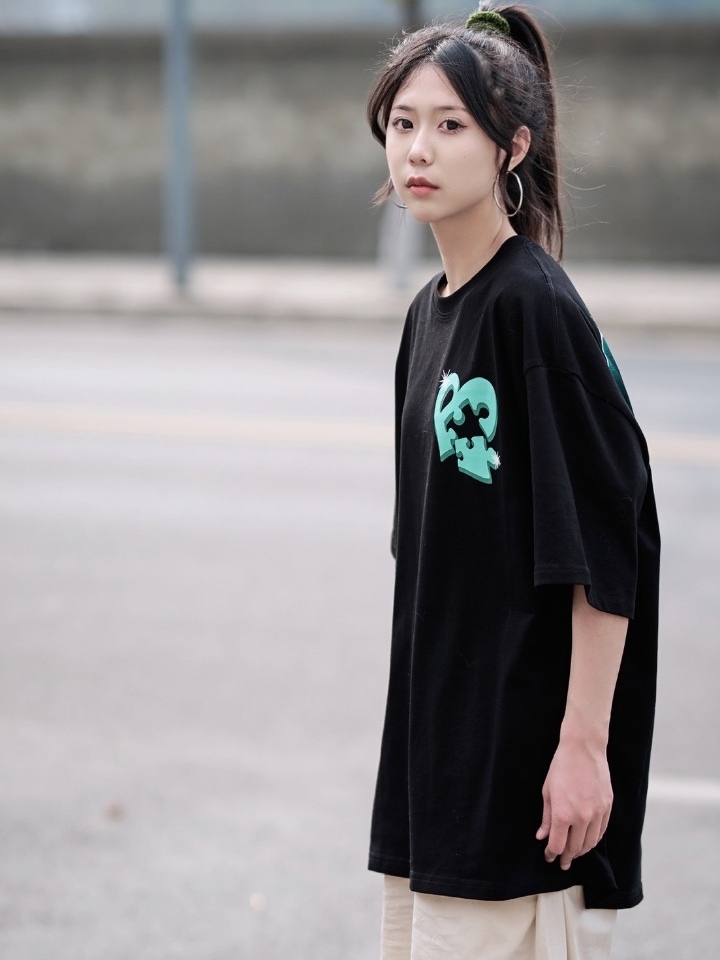 这款t恤是简约的风格,宽松的版型,时尚百搭,胸前的字母印花,很有个性,搭配牛仔裤或者短裤都很好看。