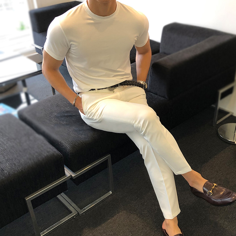 T恤采用了经典的圆领设计,搭配上经典百搭的纯色,简约大方,穿着舒适,修身的版型,上身效果很好。