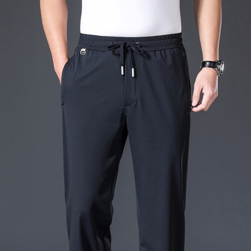 冰丝材质制作,穿着舒适透气。宽松直筒版型,修身显瘦。松紧腰设计,穿脱更方便。