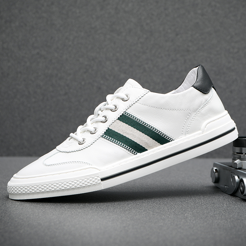 经典的款式,时尚又百搭,真皮材质,穿着舒适透气,板鞋款式,休闲时尚百搭,撞色拼接设计,个性时尚。
