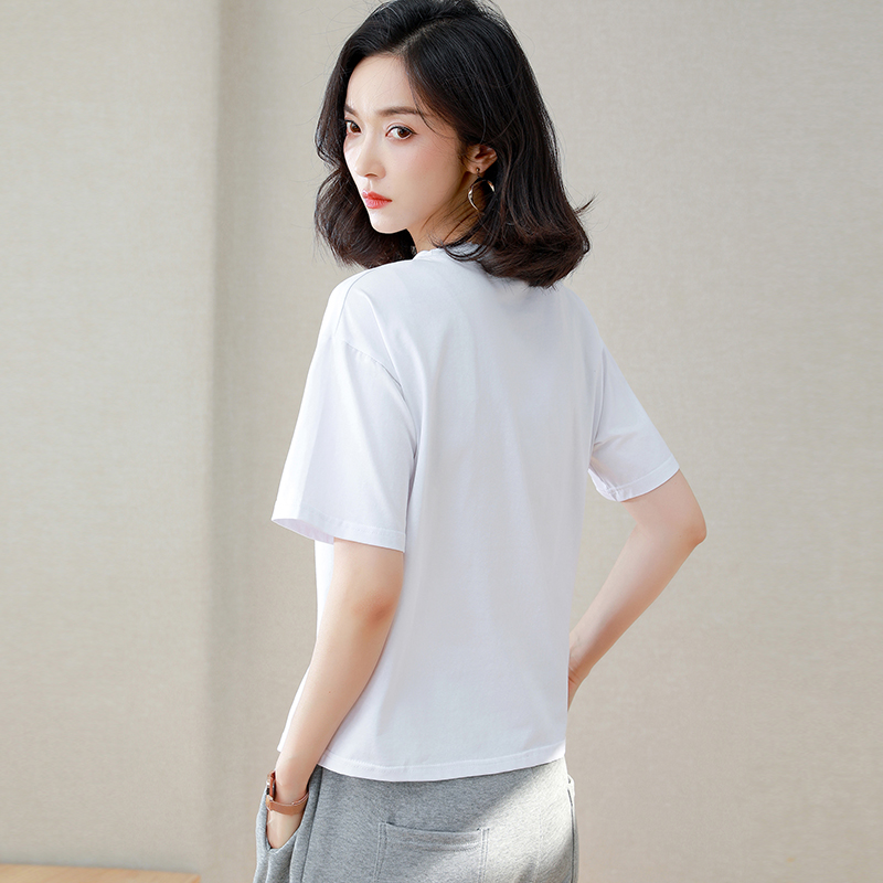 t恤是简约的风格,宽松的版型,时尚百搭,纯棉的面料,亲肤舒适,穿上很有气质,搭配牛仔裤或者短裤都很好看。