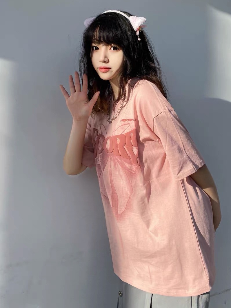 喜欢宽宽松松的T恤,穿着很舒服,衣服透气性挺好,夏天穿着不会很闷了。穿上超显瘦,而且颜色温温柔柔的,太爱了!