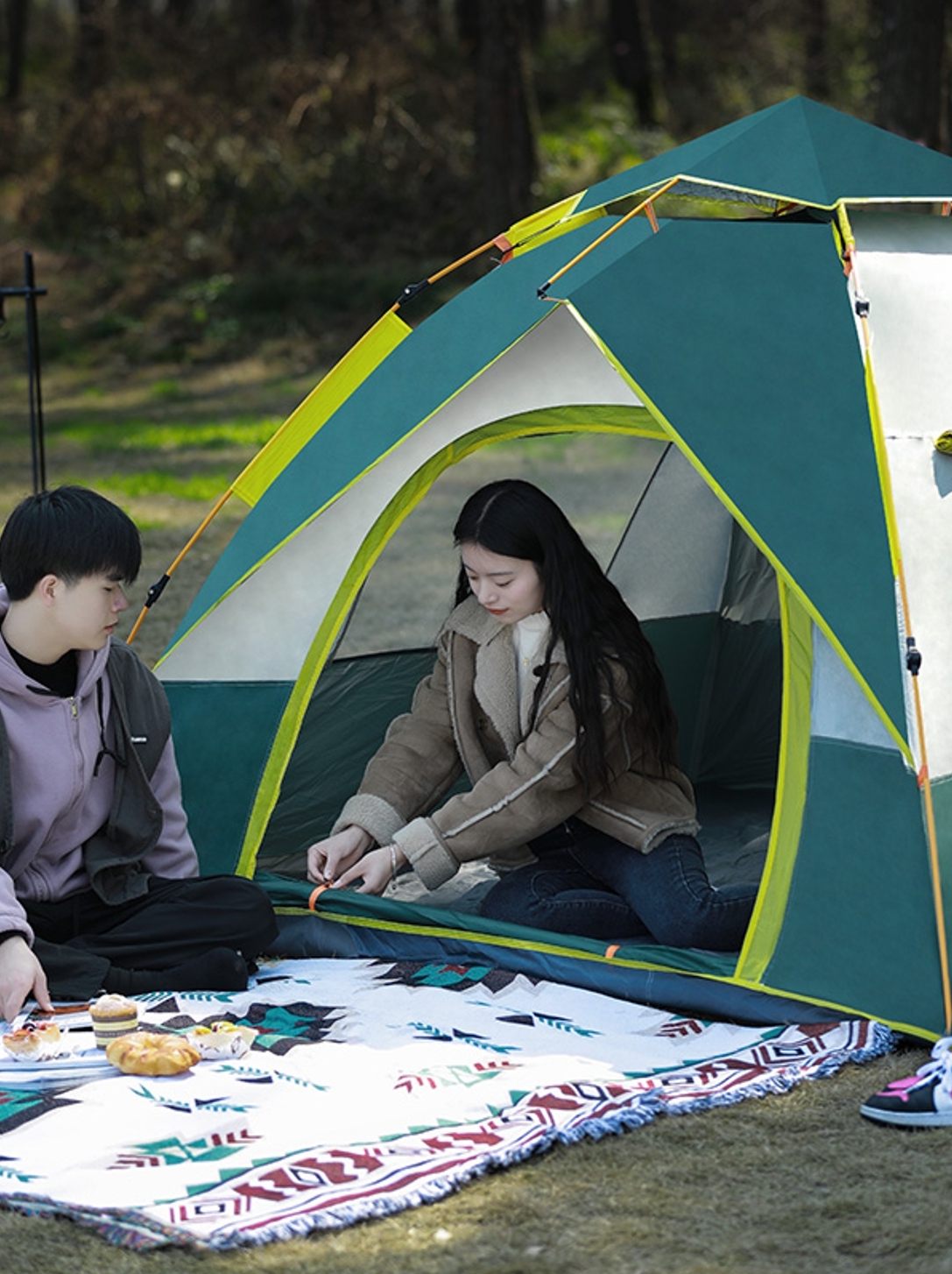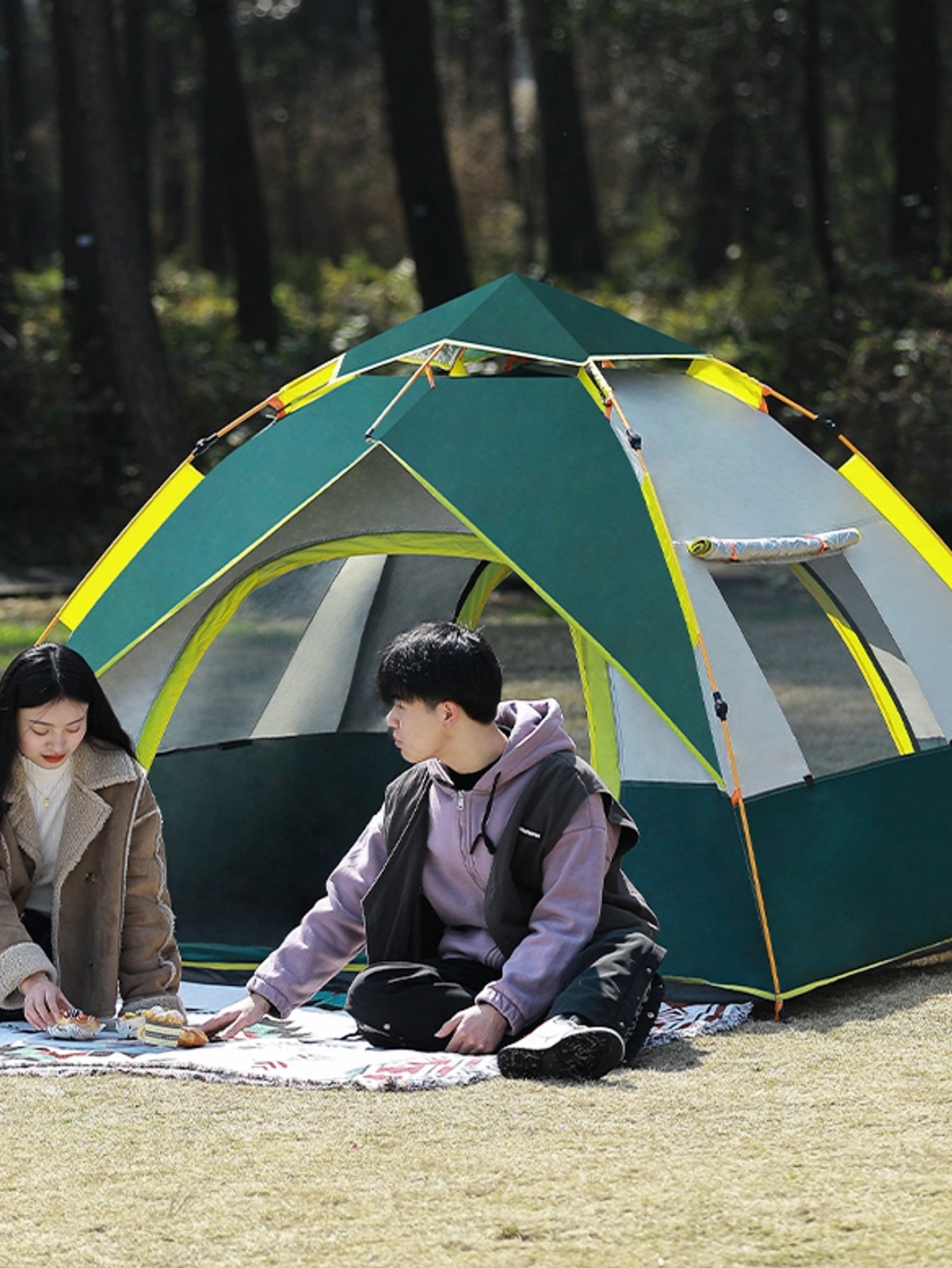 帐篷打开收纳非常方便,特意买来去公园给孩子玩,帐篷质量挺不错的,空间一家三口睡进去刚刚好,四面通风,野餐必备。