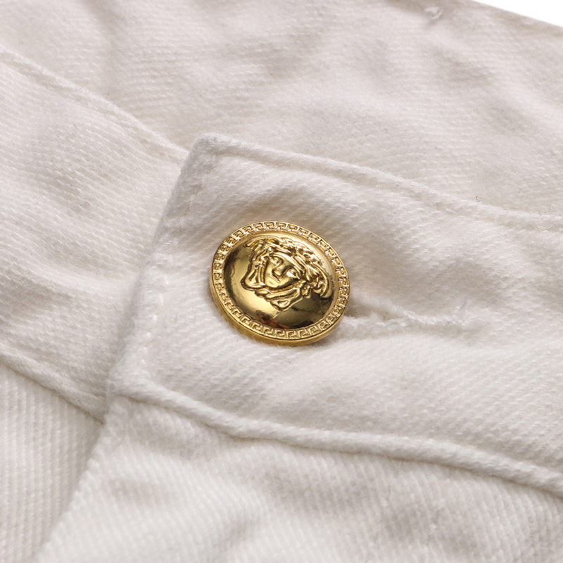 宽松的版型,穿着舒适自在,修身的剪裁,拉长腿部线条,显瘦效果好,个性的破洞设计。