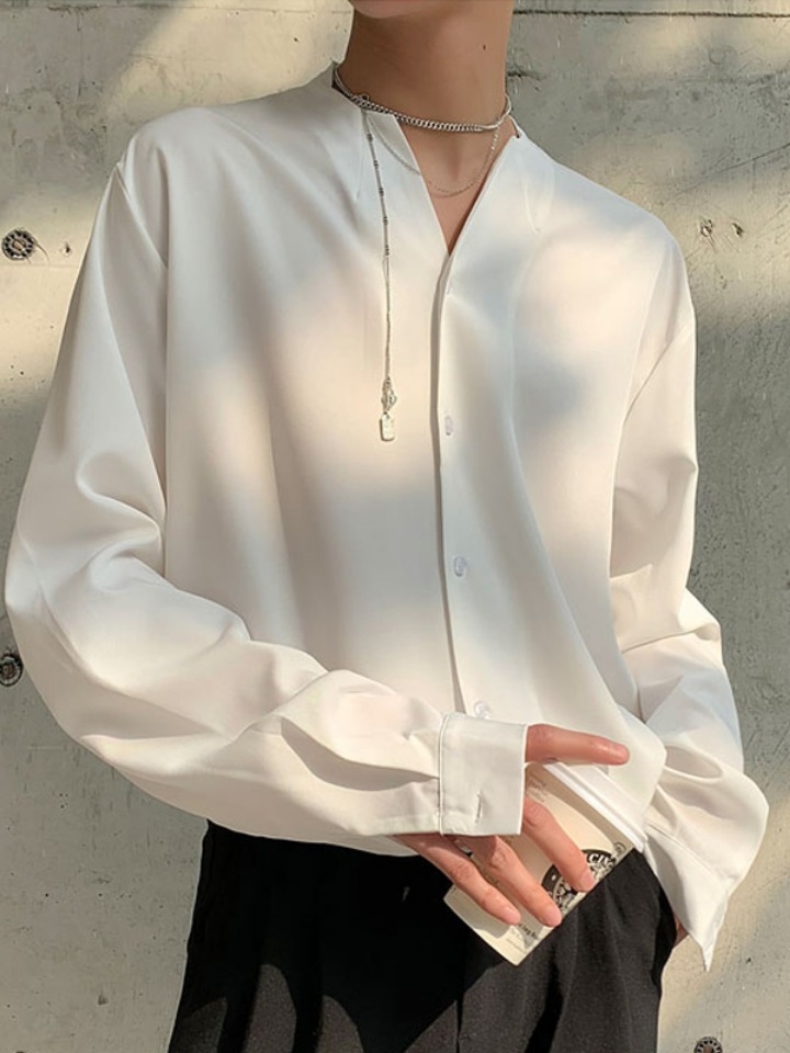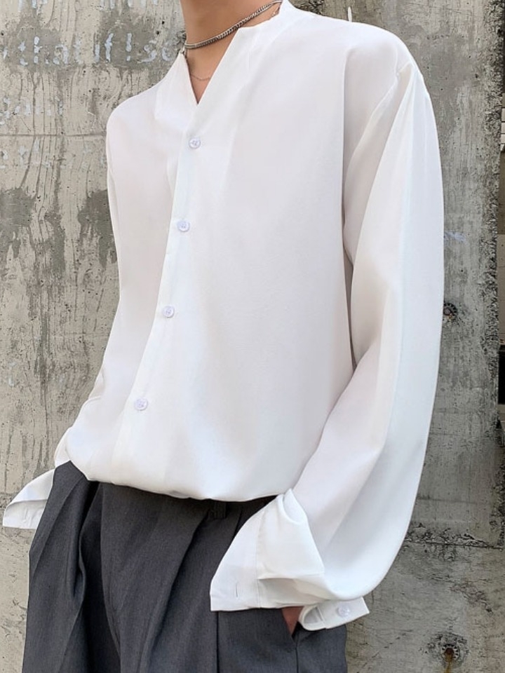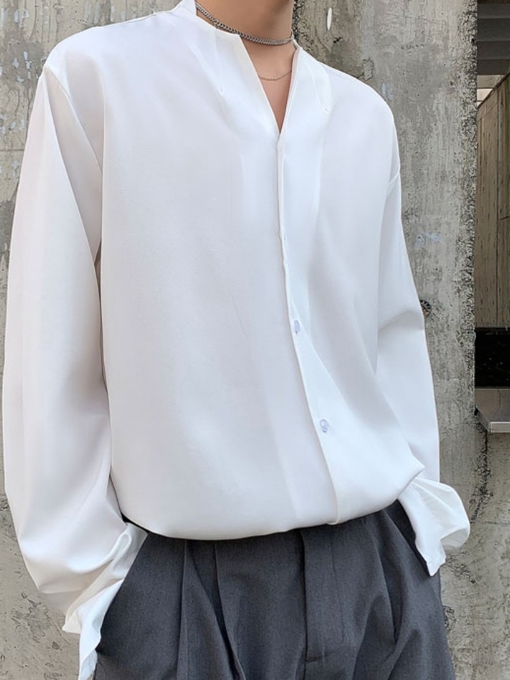 见惯了各种无领设计的衬衫,再看看这款小立领设计的衬衫,会给人更加清新文艺的感觉,虽然版型简单,但胜在穿着足够舒适。