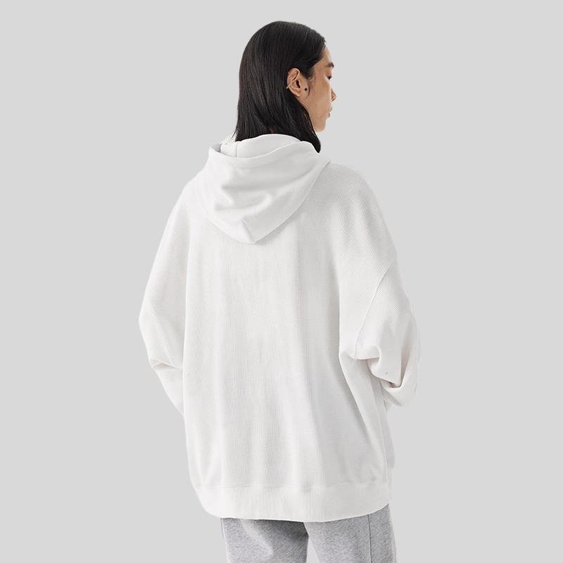充满青春活力感的连帽卫衣,搭配上宽松的休闲裤,彰显出满满的街头气息,脚踩一双系带的板鞋,轻松凹造型。
