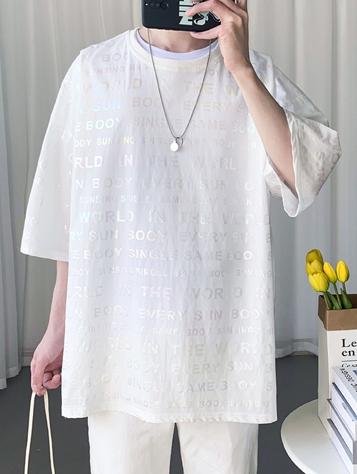 这款t恤是简约的风格,宽松的版型,时尚百搭,胸前的字母印花,很有个性,搭配牛仔裤或者短裤都很好看。
