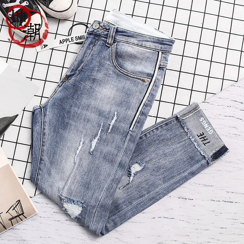 高腰设计,拉长身材比例。高腰牛仔裤,显瘦显腿长。直筒裤型,修饰腿部线条。