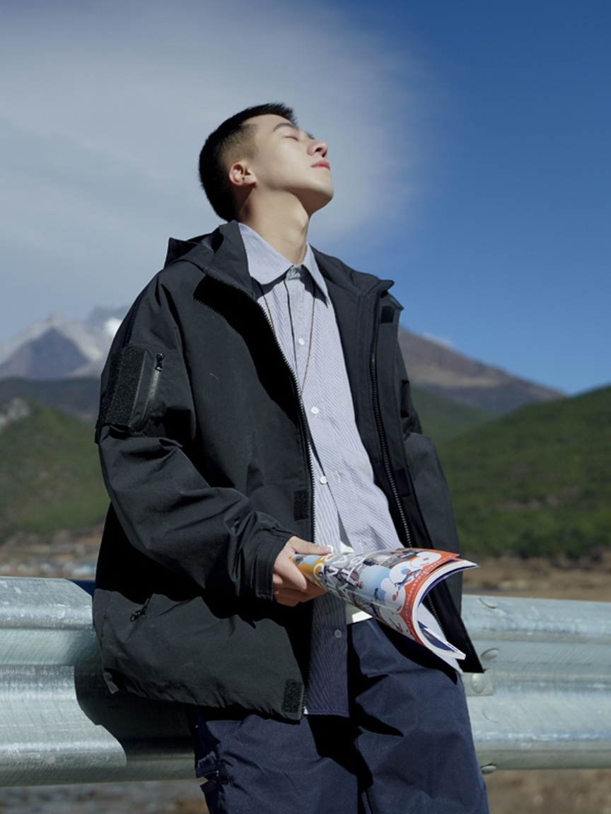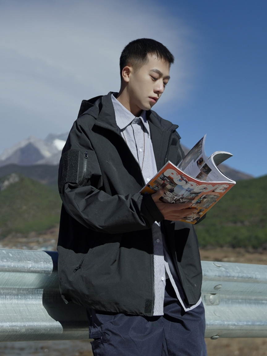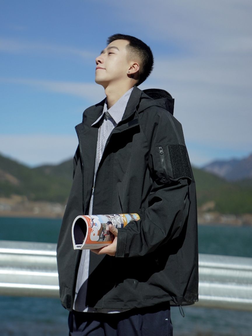 这款外套夹克采用干净立体的剪裁设计,凸显潮男帅气身形,打造高大时尚型男,臂袋魔术贴设计,立体感十足,连帽设计,更是在设计上采用小心思,让您简单搭配都时尚有型。