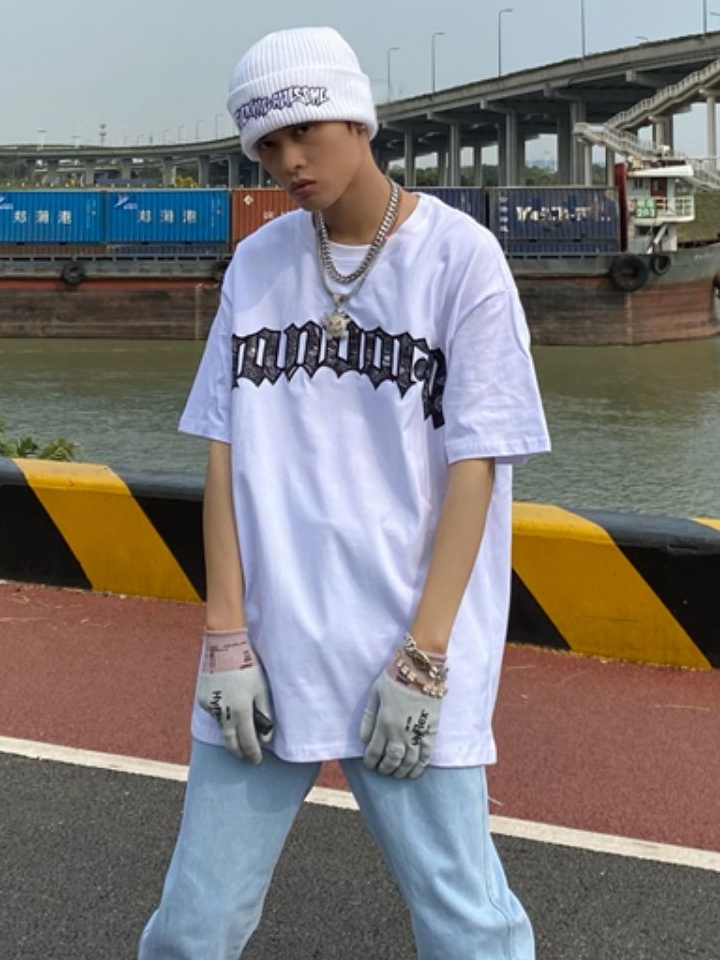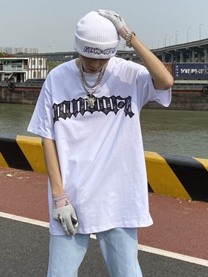 这款t恤是简约的风格,宽松的版型,时尚百搭,胸前的字母印花,很有个性,搭配牛仔裤或者短裤都很好看。
