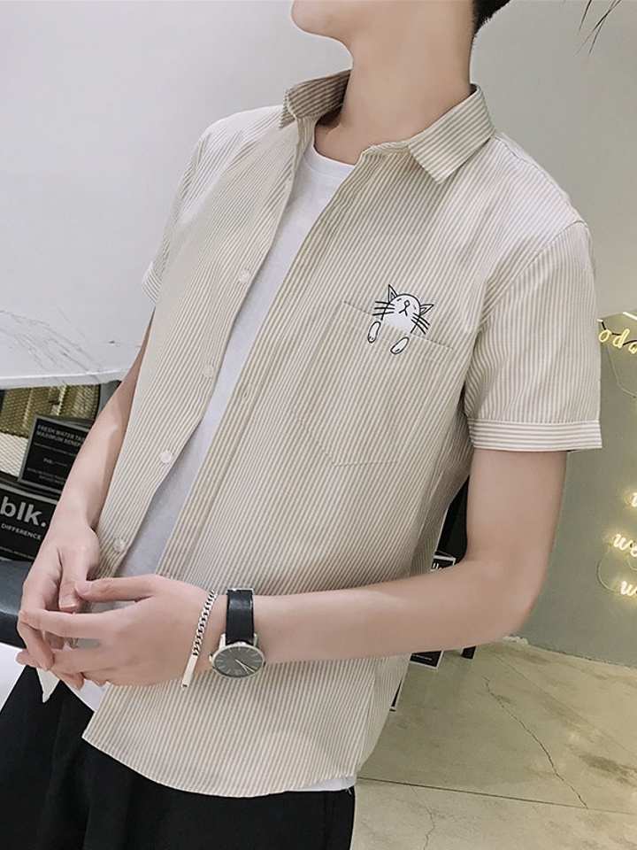 这款短袖衬衫采用了简约的翻领设计,显得简约又休闲;衣身融入了时尚的条纹设计,修身的剪裁,上身更好的贴合身材,线条流畅。