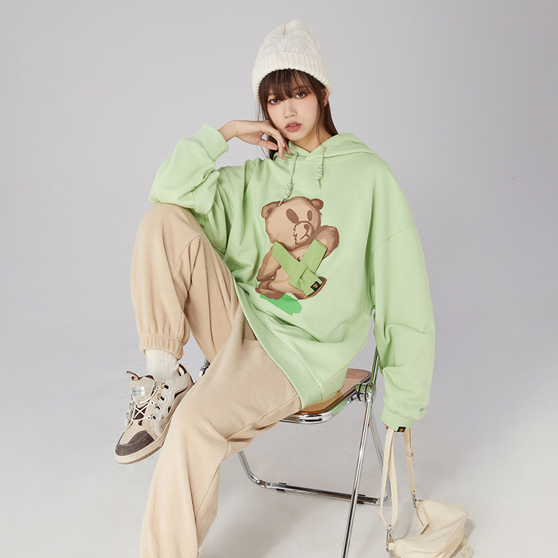 连帽的款式设计,让这款卫衣上身就很有年轻不羁感。
