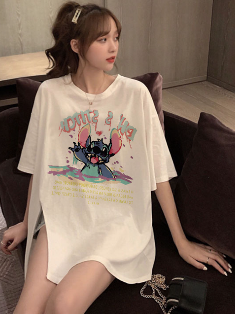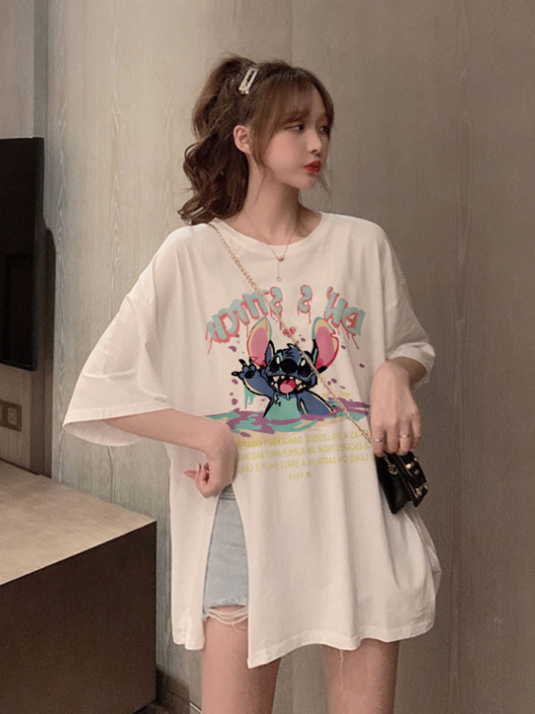 简单纯色,但是却在胸口做了搞怪可爱的史迪仔印花,让整个衣身变得与众不同,而且一点也不显得单调,反而潮感十足。