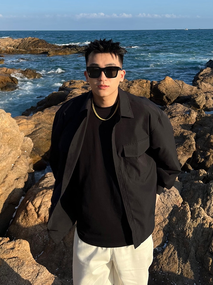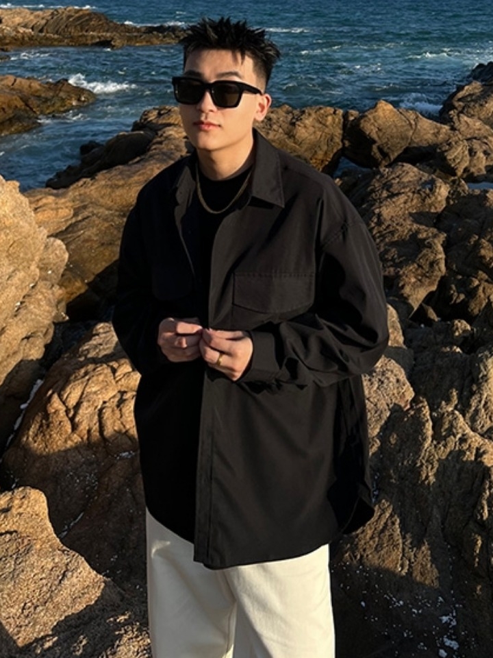 以简约作为主调设计的一款衬衫,其纯色调的加入,配合以下摆处的贴标,非常具有活力的体现;而胸口折层的加入,则是带来不错的上身效果。