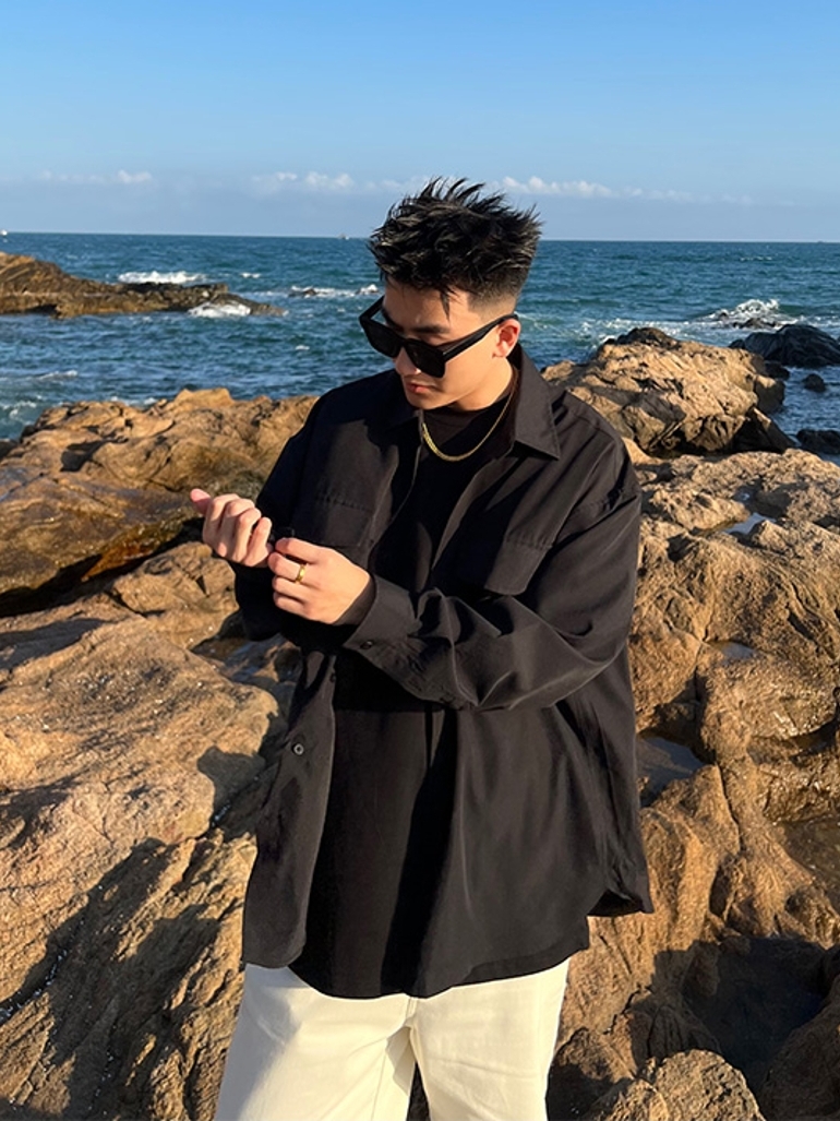 此款长袖衬衫采用了3D的立体剪裁设计,契合了挺括的身形,配合精致的小尖领,凸显儒雅斯文魅力。圆弧形的下摆,剪裁流畅而细腻,贴合臀部的轮廓。前幅以不对称的一字型贴袋装饰,打破了中规中矩的感觉,富余时尚的气息。
