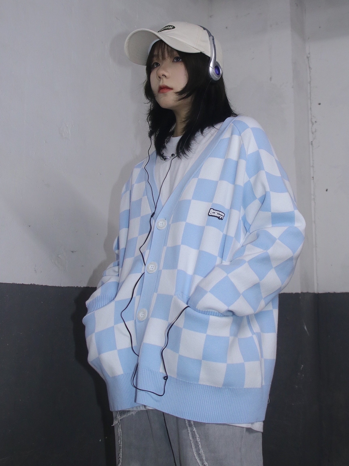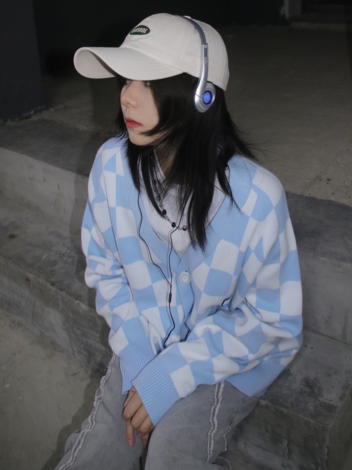 喜欢这个毛衣开衫,毛衣摸起来的质感很舒服,特别厚实,这个天气穿刚刚好,棋盘格纹yyds,完全是时尚女性的必备之选。