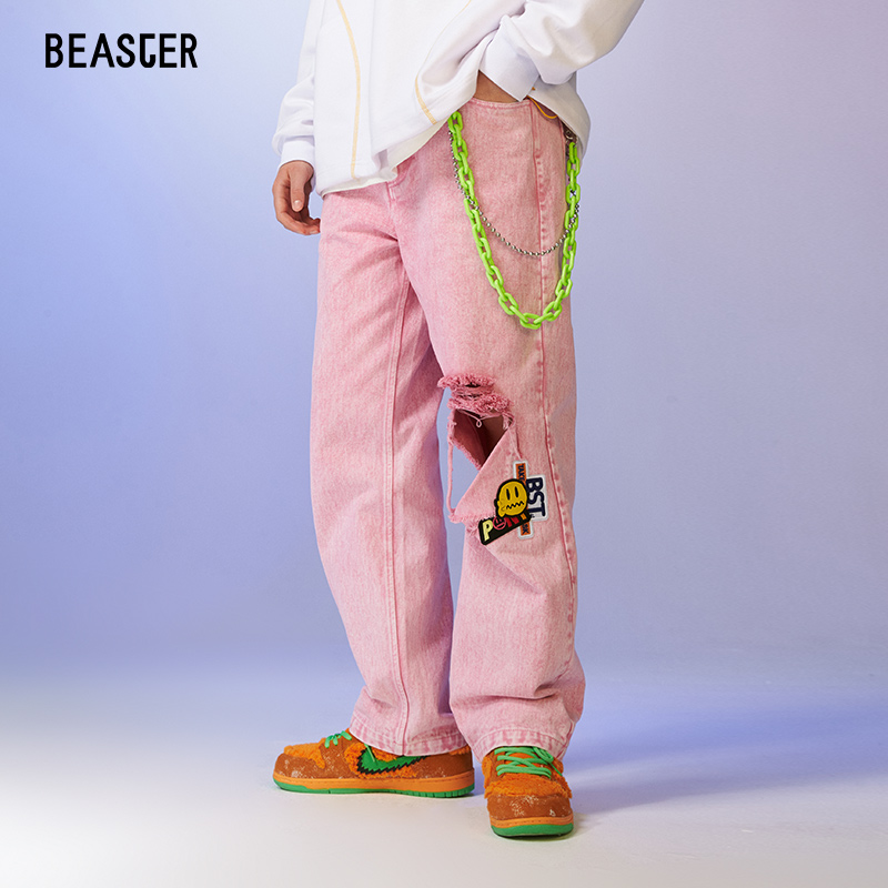 牛仔裤的版型,上身效果很好,很显瘦,裤脚的毛边设计,更显个性,搭配一件T恤,就能轻松穿出时尚感。